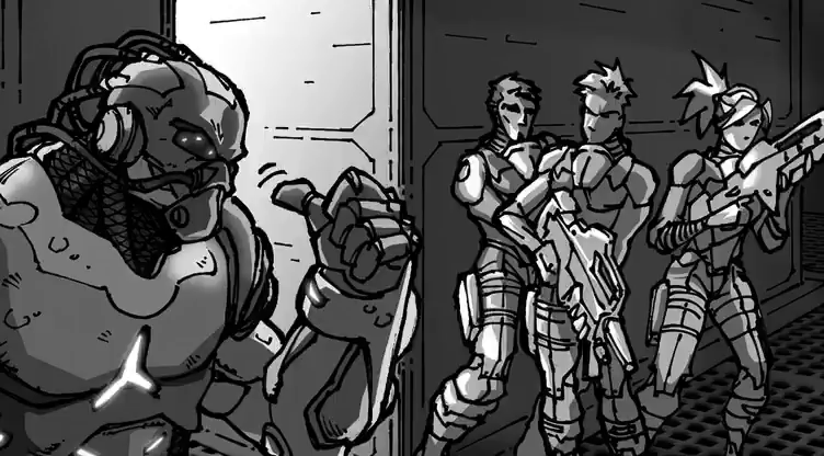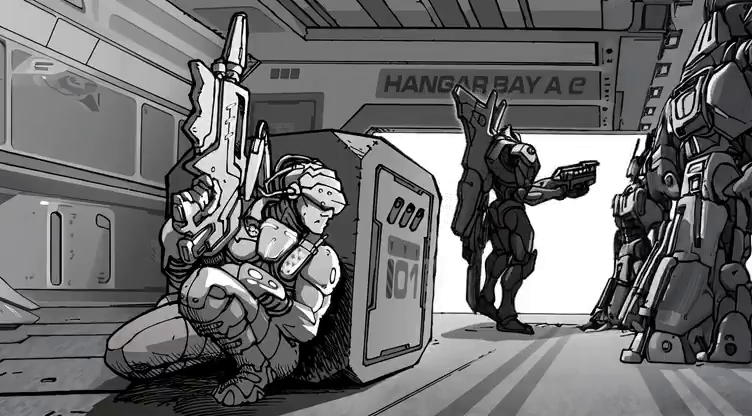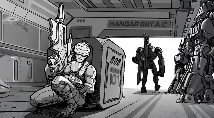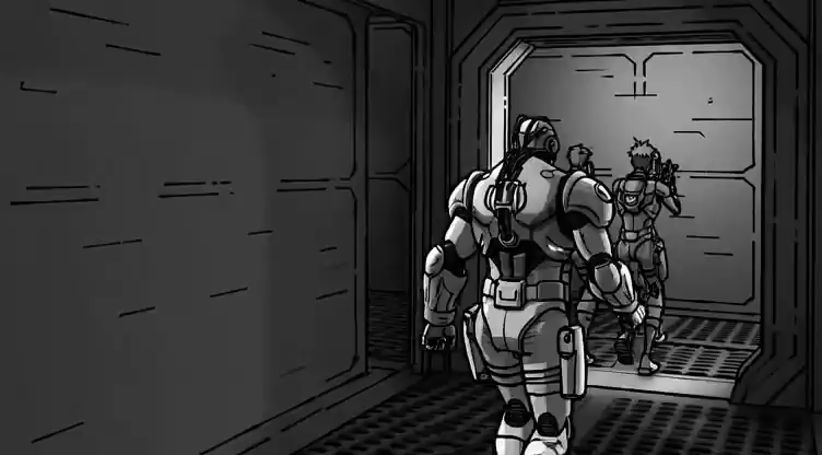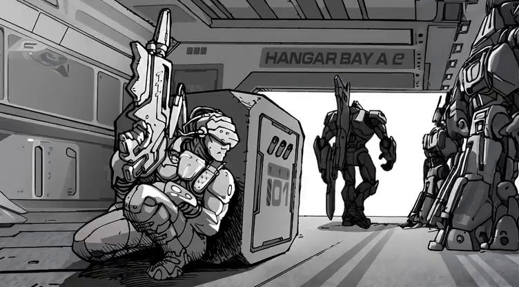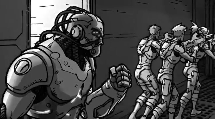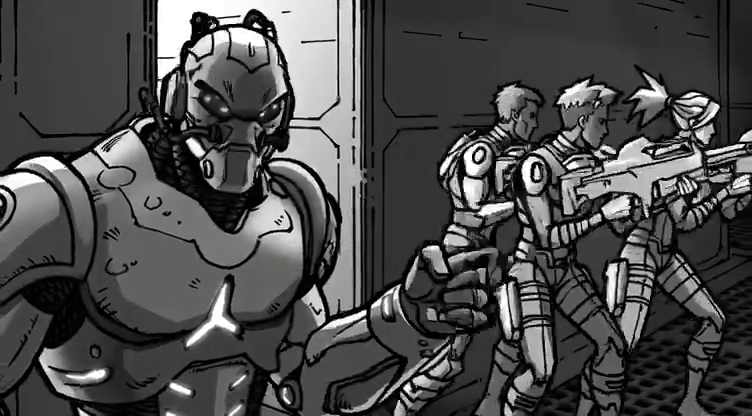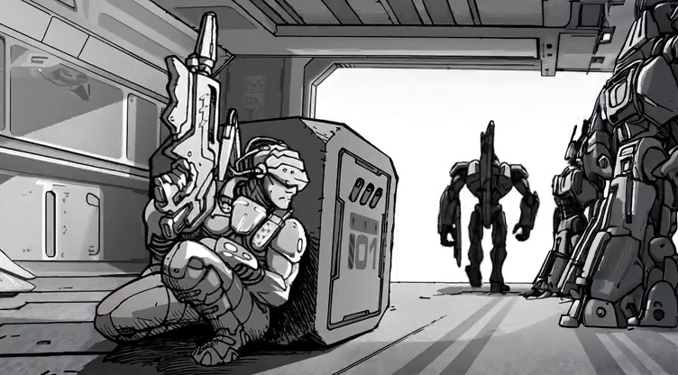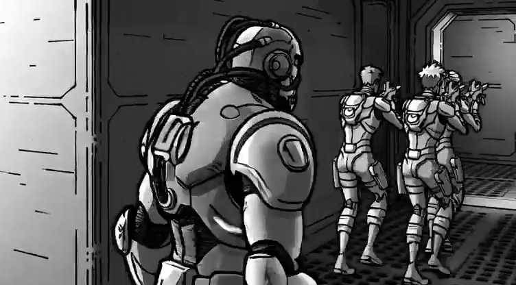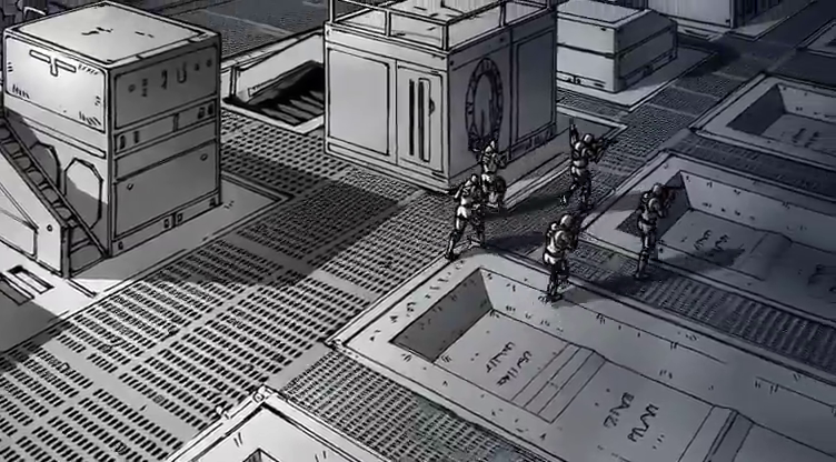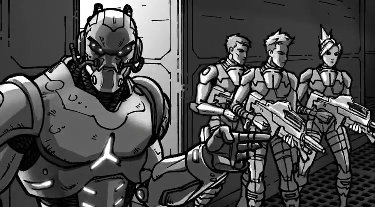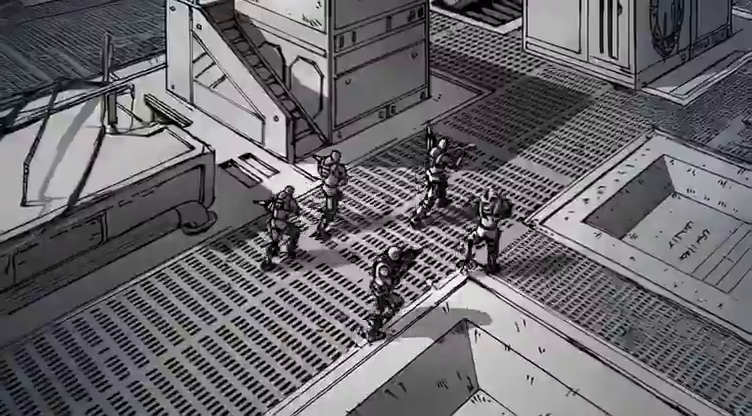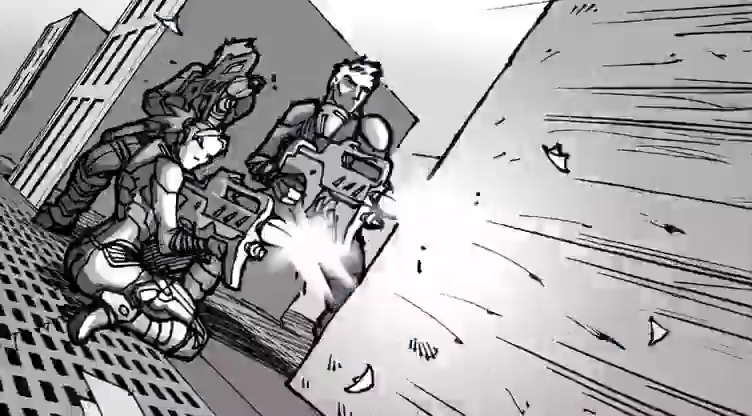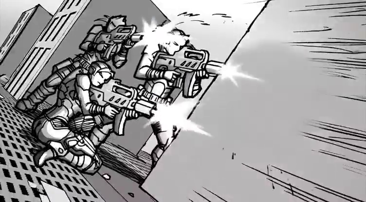 Illustrations en provenance d'une animation de Bostria de la N2 qu'il a transformé, j'ai extrait les animations clefs, ce sont des illustrations qui illustrent une fireteam d'alguaciles avec un ancien mobile brigada.