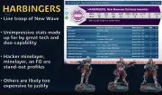 Harbingers - Infanterie de première ligne : Des combattants armés solides avec des kits modernes ; La colle qui porte les objectifs pendant que vos étoiles frappent.