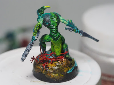 Hé ben moi je les trouve bien cools ces fourbes de Shas ! le schéma leur colle vraiment très bien, et tu as réussi à obtenir un aspect très organique, on a l'impression qu'ils vont être froids et humides comme des grenouilles au toucher ! :D