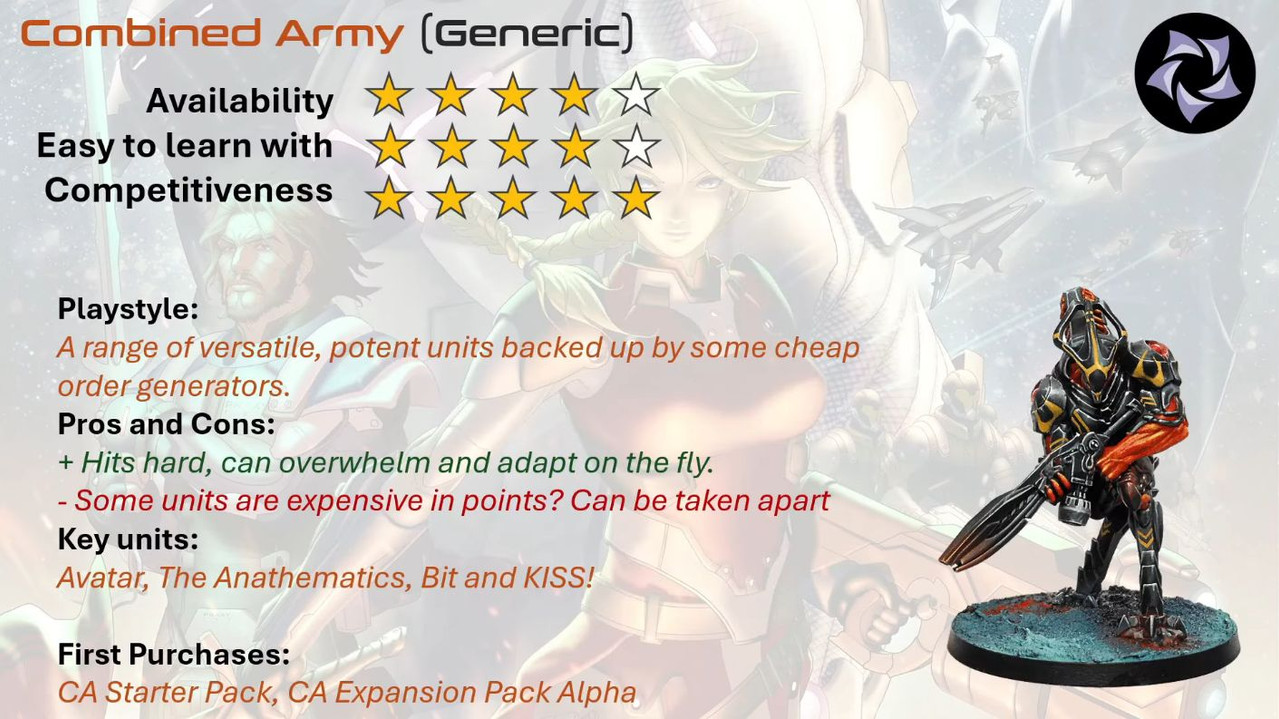 Voici un sujet pour récap les diverses ressources tacticas de l'édition Infinity N5 autour de la faction Armée Combinée vanilla.
