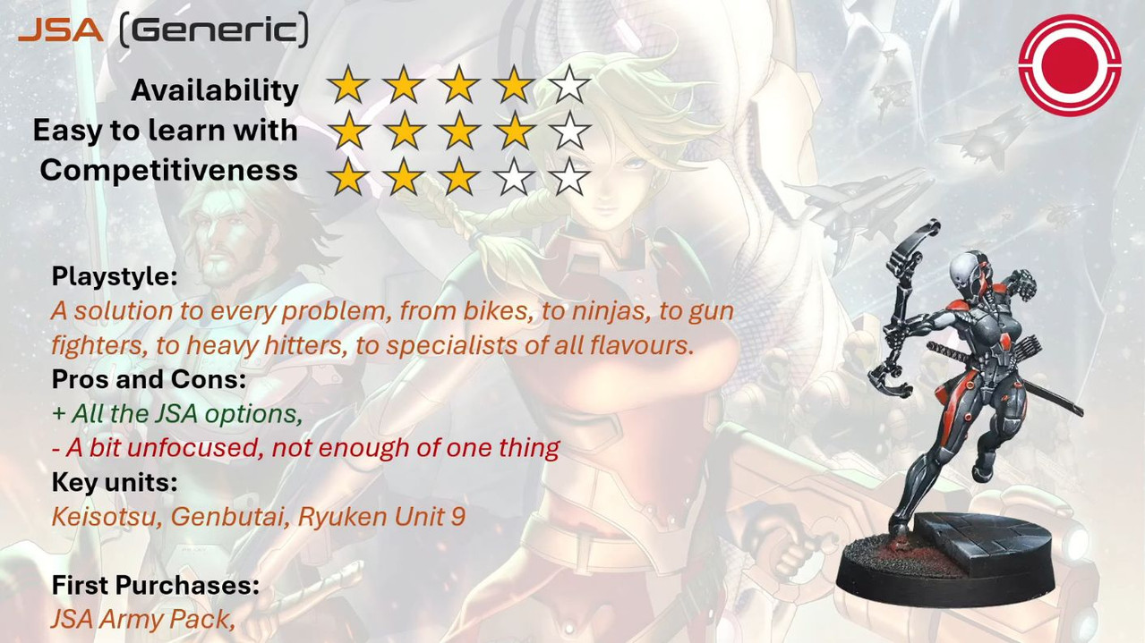 La JSA est une faction subtile qui nécessite une bonne compréhension des mouvements et des tactiques de couverture. En utilisant efficacement les fumigènes, les unités furtives, et les fireteams, vous pouvez contrôler le champ de bataille et punir les erreurs de l'ennemi. Les sous-factions Shidenbutai et Oban offrent des options uniques qui peuvent être exploitées pour maximiser votre potentiel de jeu.