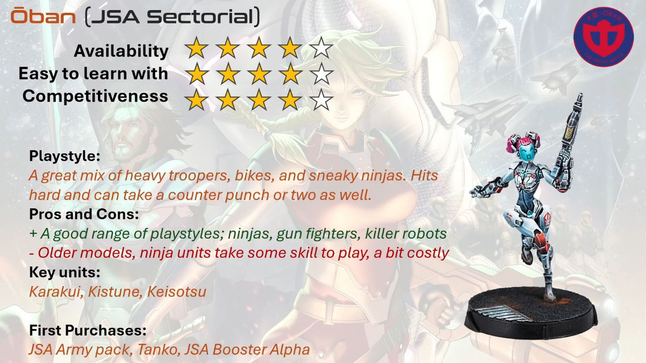 La sous-faction Oban de la faction JSA se distingue par plusieurs caractéristiques clés qui en font une force unique sur le champ de bataille :